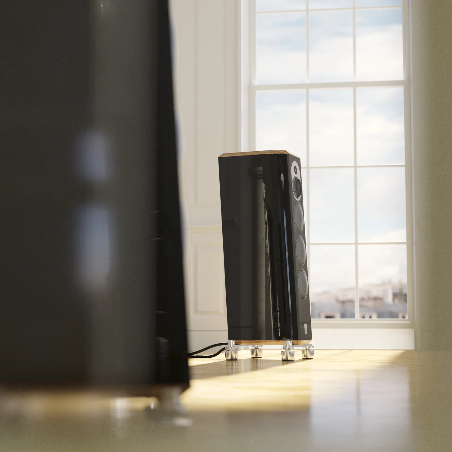 Chaque enceinte est finie par un placage et un laquage de précision, constitué de 7 couches chacune étant polie à la main entre chaque séchage. La qualité chaleureuse du bois contraste et complète le meuble Piano Black brillant, tout en offrant une stabilité supplémentaire. Ce matériau naturel équilibre soigneusement le design et la fonction de l’enceinte Mingus Quintet 2.