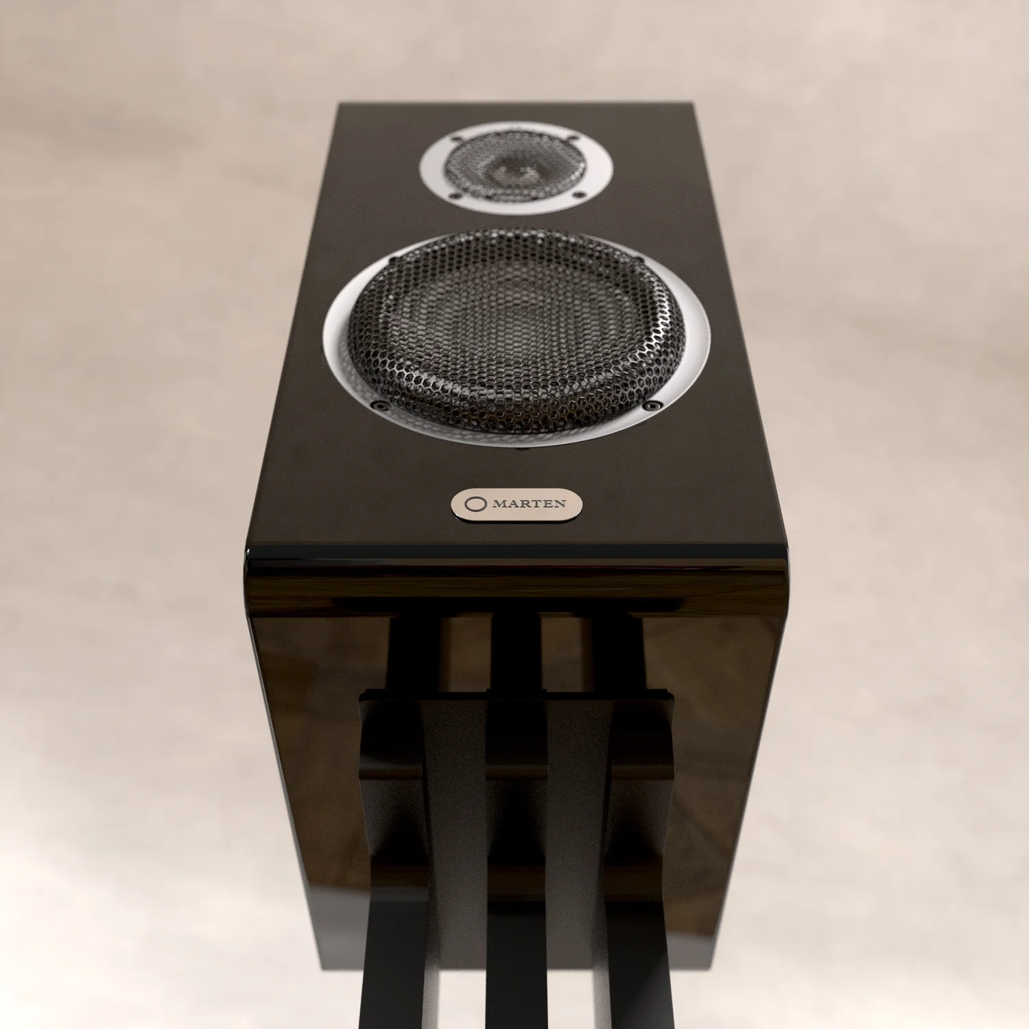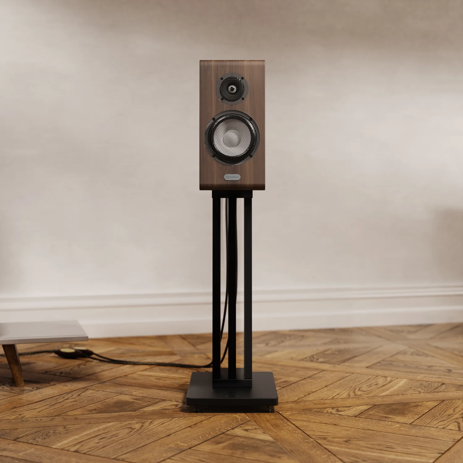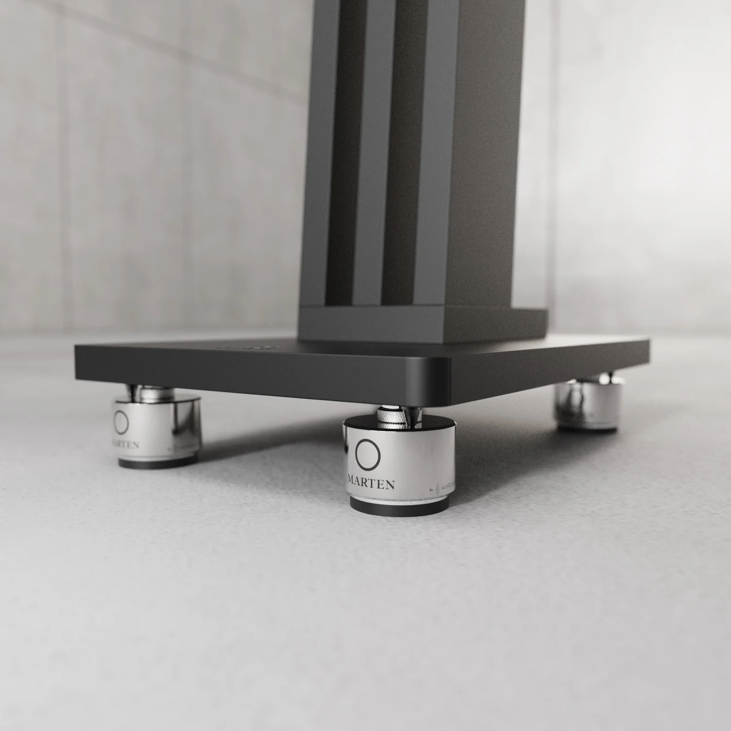 Et ce n’est pas la seule chose qui ait été personnalisée pour la MARTEN Oscar Duo : le pied optionnel est d’origine MARTEN pour assurer que ce support fonctionnerait parfaitement en tenant compte autant de la résonance que de la forme. Le pied devait être suffisamment rigide pour supporter les vibrations mais aussi d’être esthétique : après de nombreuses itérations, le design à trois piliers a été retenu pour permettre d’alléger l’aspect général tout en maintenant la stabilité.