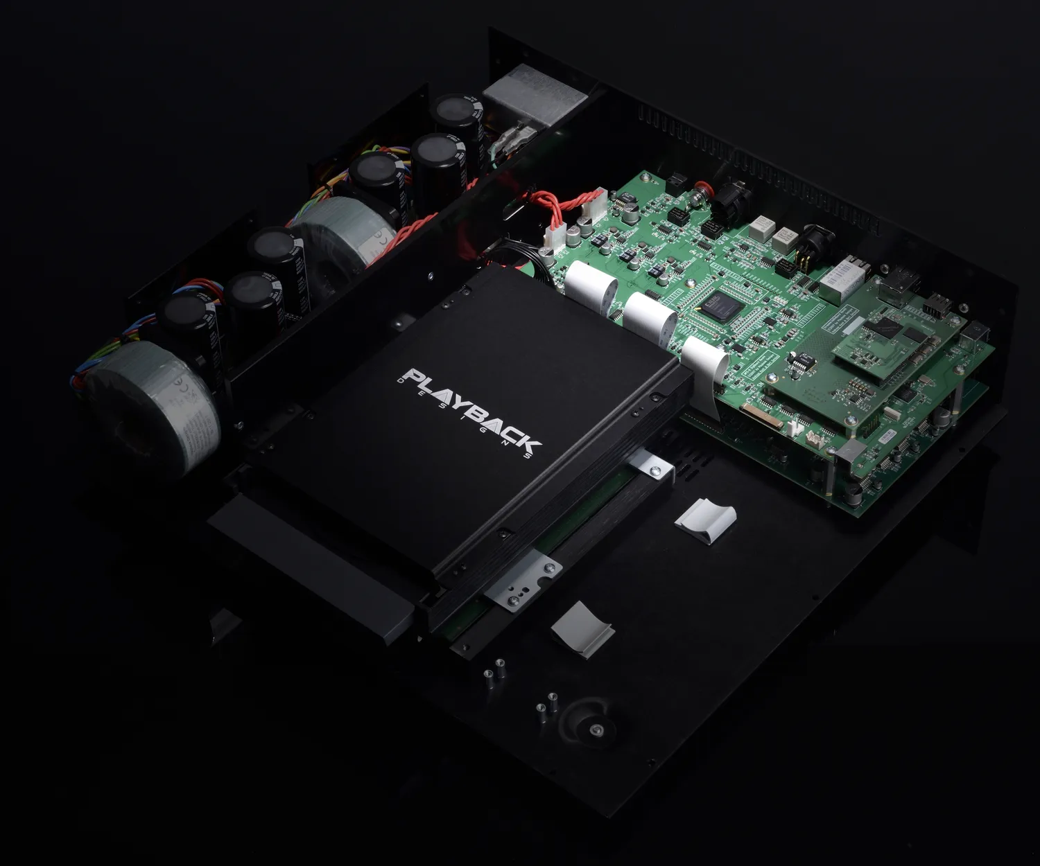 Contrairement au MPD-8, les deux voies du PLAYBACK DESIGNS MPS-8 ne sont pas complètement séparées : un seul circuit électronique et une alimentations unique pour les deux voix. En revanche, deux alimentations sont présentes dans l’appareil, l’une alimentant la partie numérique et l’autre la partie analogique.