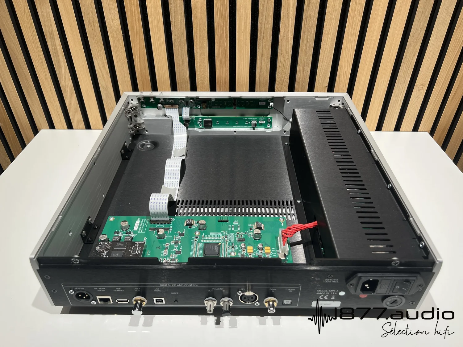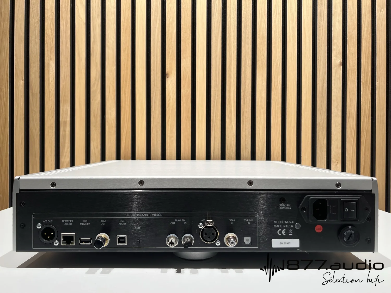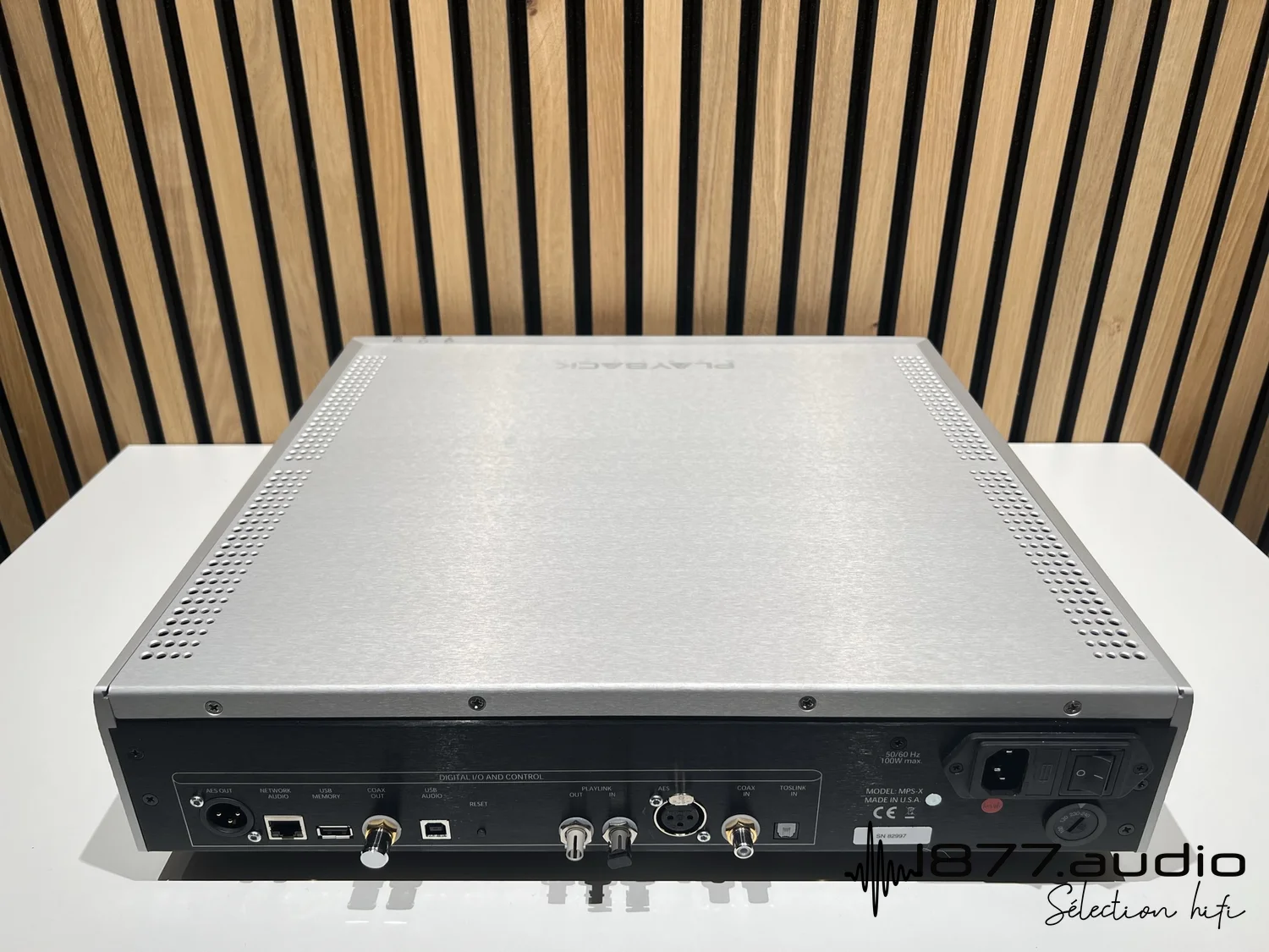 Dans la gamme Edelweiss (identifiée par le chiffre 6 dans la référence) de PLAYBACK AUDIO lancée début 2022 pour compléter la gamme Dream (chiffre 8), le PLAYBACK DESIGNS MPS-X est un streamer qui accueille la carte Stream-X2 dans un boitier spécifique afin d’apporter aux autres appareils qui lui sont connectés les services en lignes tels que TIDAL, QOBUZ, DEEZER et la connectivité ROON et UPnP.