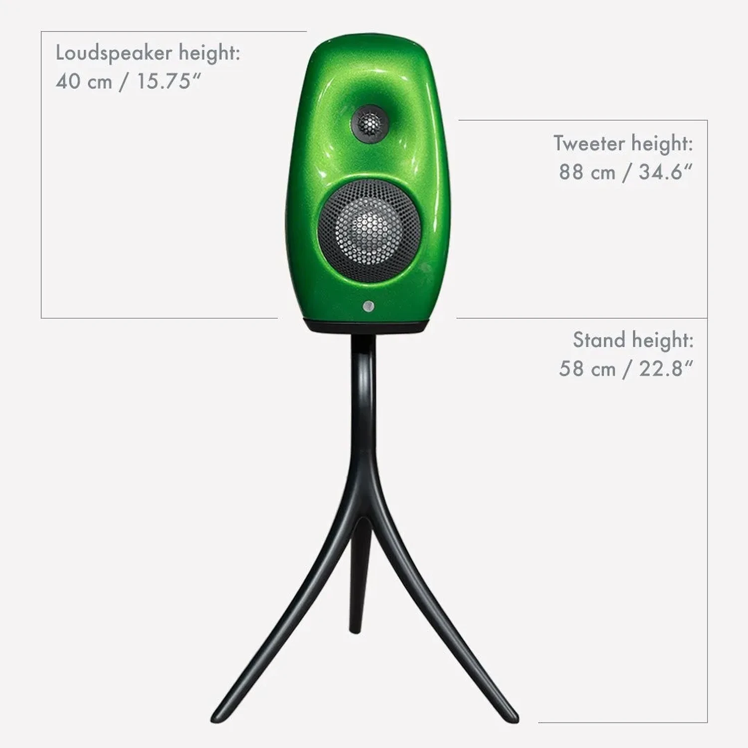 Il s’agit d’une enceinte 2 voies et 2 haut-parleurs constituée de matériaux composites très haut de gamme et monobloc comme les autres produits de la gamme ce qui apporte des propriétés supérieures à de l’ébénisterie classique.