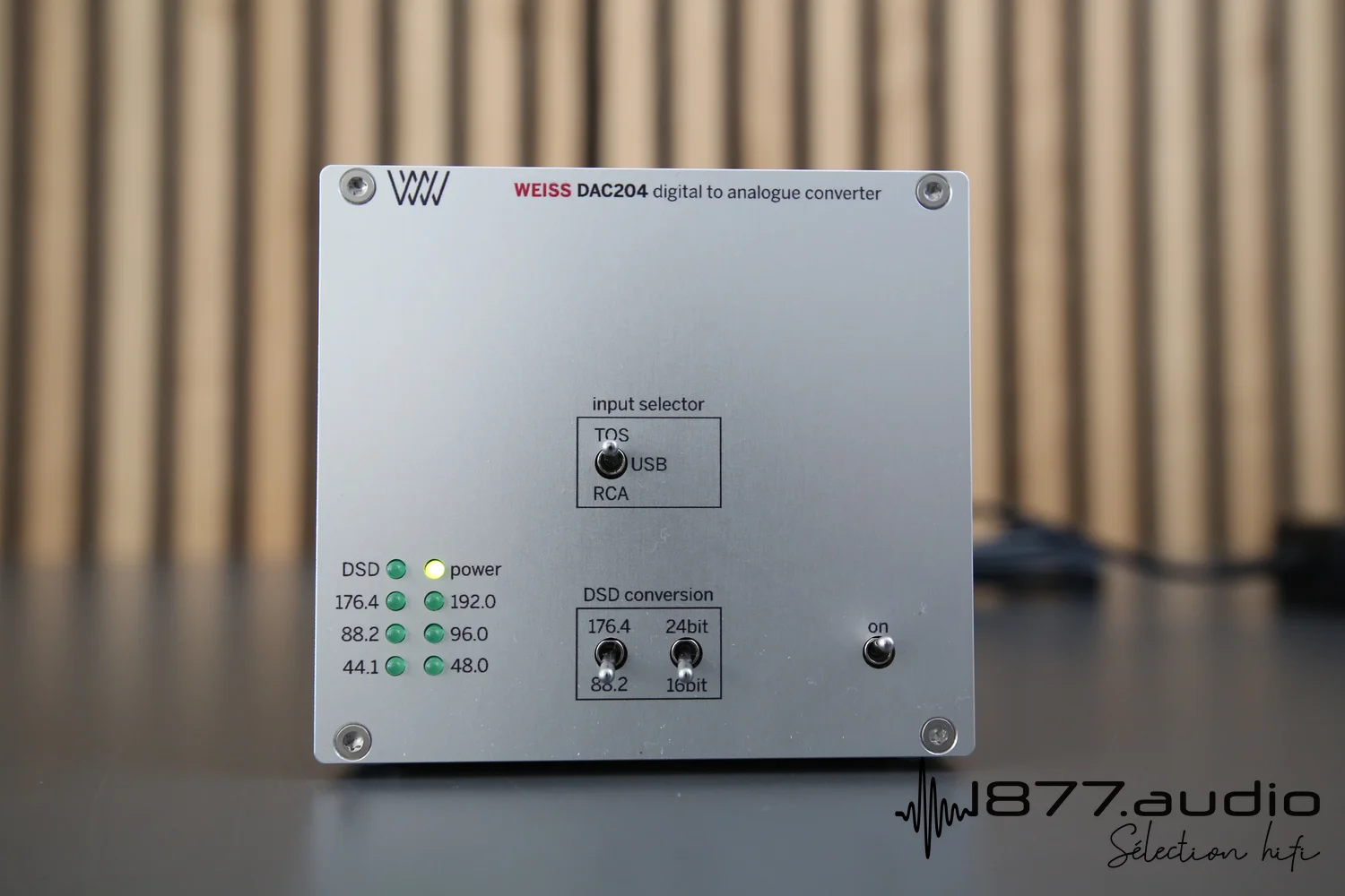 Améliorez votre installation audiophile en y ajoutant le WEISS DAC204 qui convertira vos flux numériques via ses interfaces S/PDIF (en RCA et en TOSlink) ainsi qu’USB en flux analogique d’être lu à travers un préamplificateur ou un intégré. Cette solution permet de décoder vos sources numériques de manière bien plus qualitative que ce que peut aujourd’hui vous proposer votre DAC intégré ou encore votre lecteur de CD et tout autre appareil équipé de sorties audio numériques.