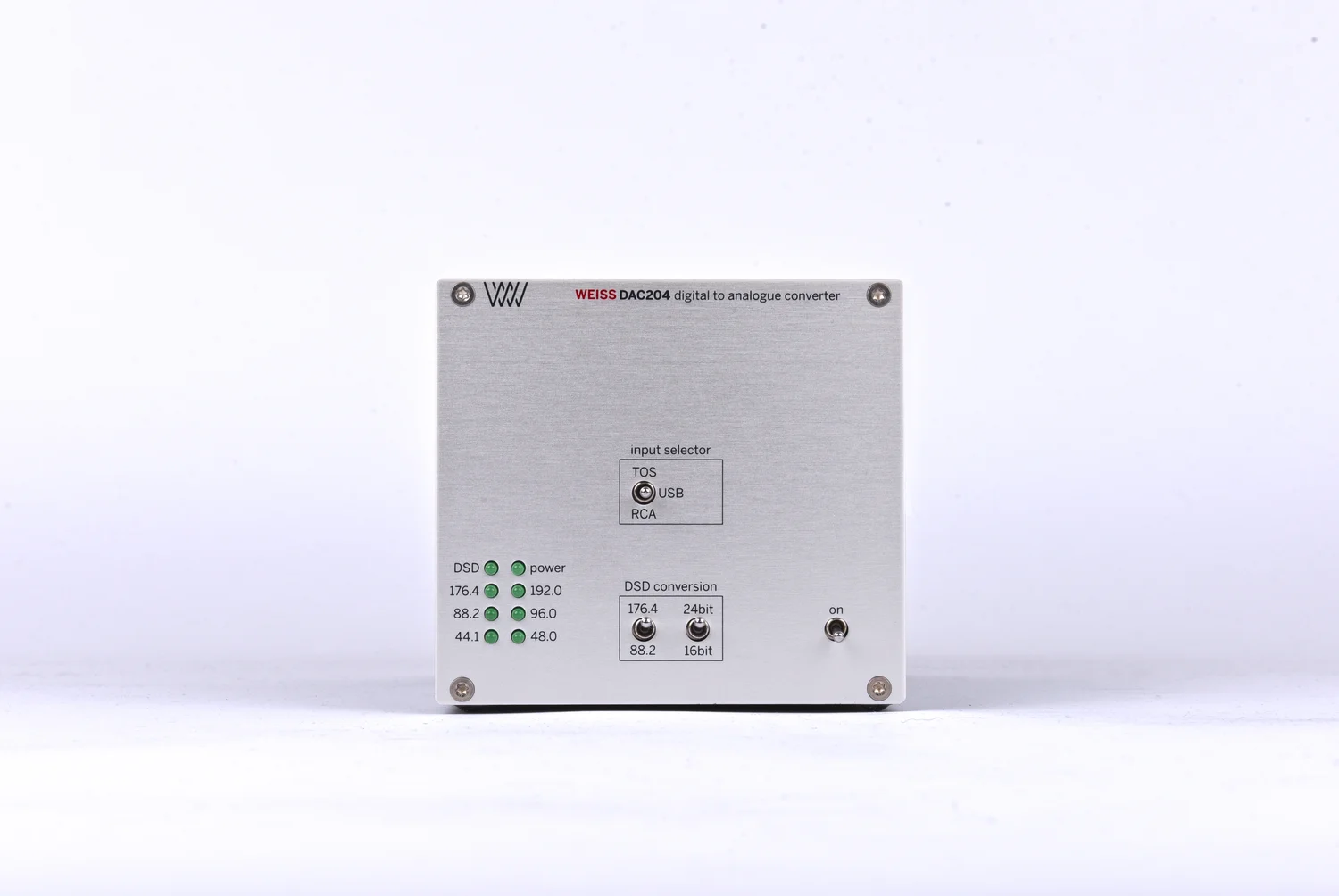 Le WEISS DAC204 offre la même qualité de conversion que le modèle DAC205 mais accepte en sus l’audio numérique via USB et effectue la conversion DSD64 et DSD128 vers PCM. Le DAC204 est une option relativement abordable par rapport aux appareils de qualité supérieure de WEISS tels que le DAC501 et le DAC502. Il dispose donc d’un nombre de fonctions réduit mais offre une qualité de conversion bien supérieure à celle des produits concurrents dans la même gamme de prix.